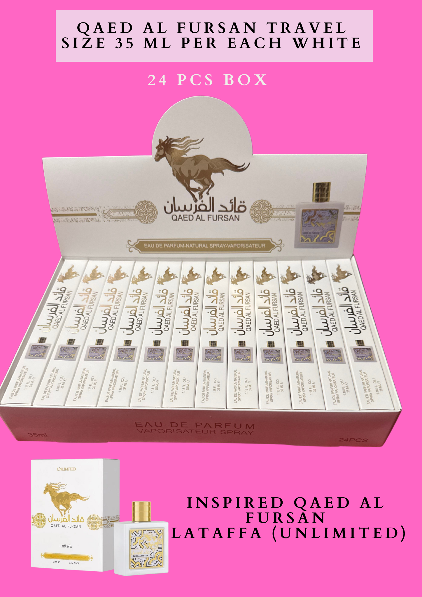Qaed al fursan travel size 35 ml per each white -24 pcs box