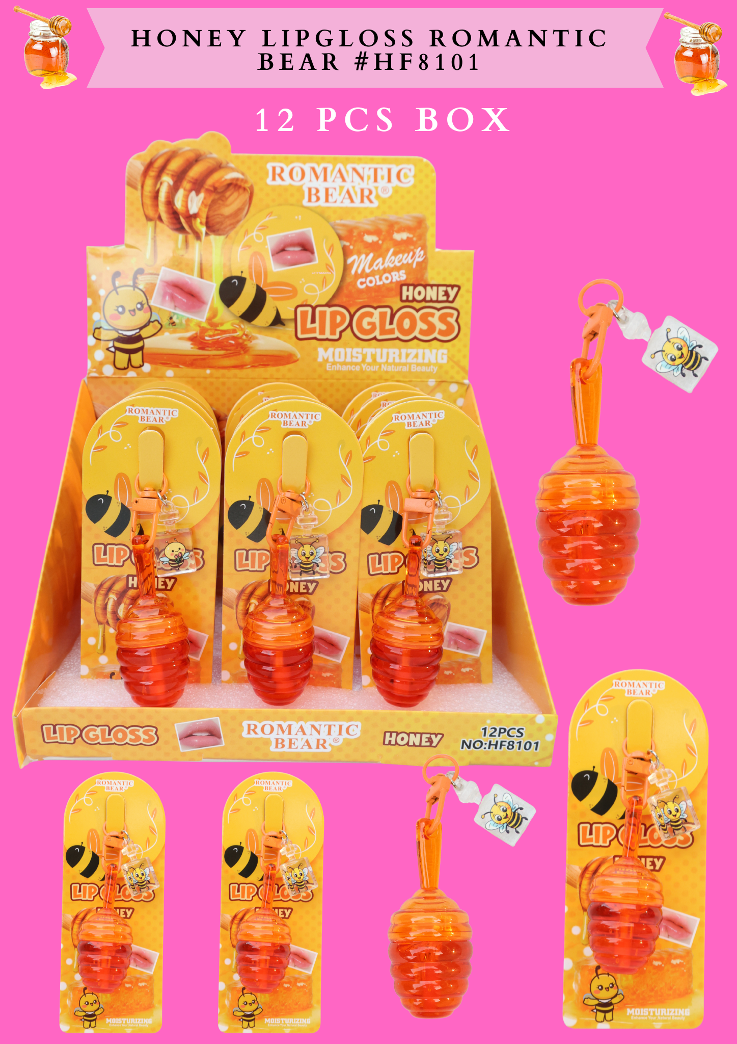 HONEY LIPGLOSS ROMANTIC BEAR #HF 8101 12 PCS BOX