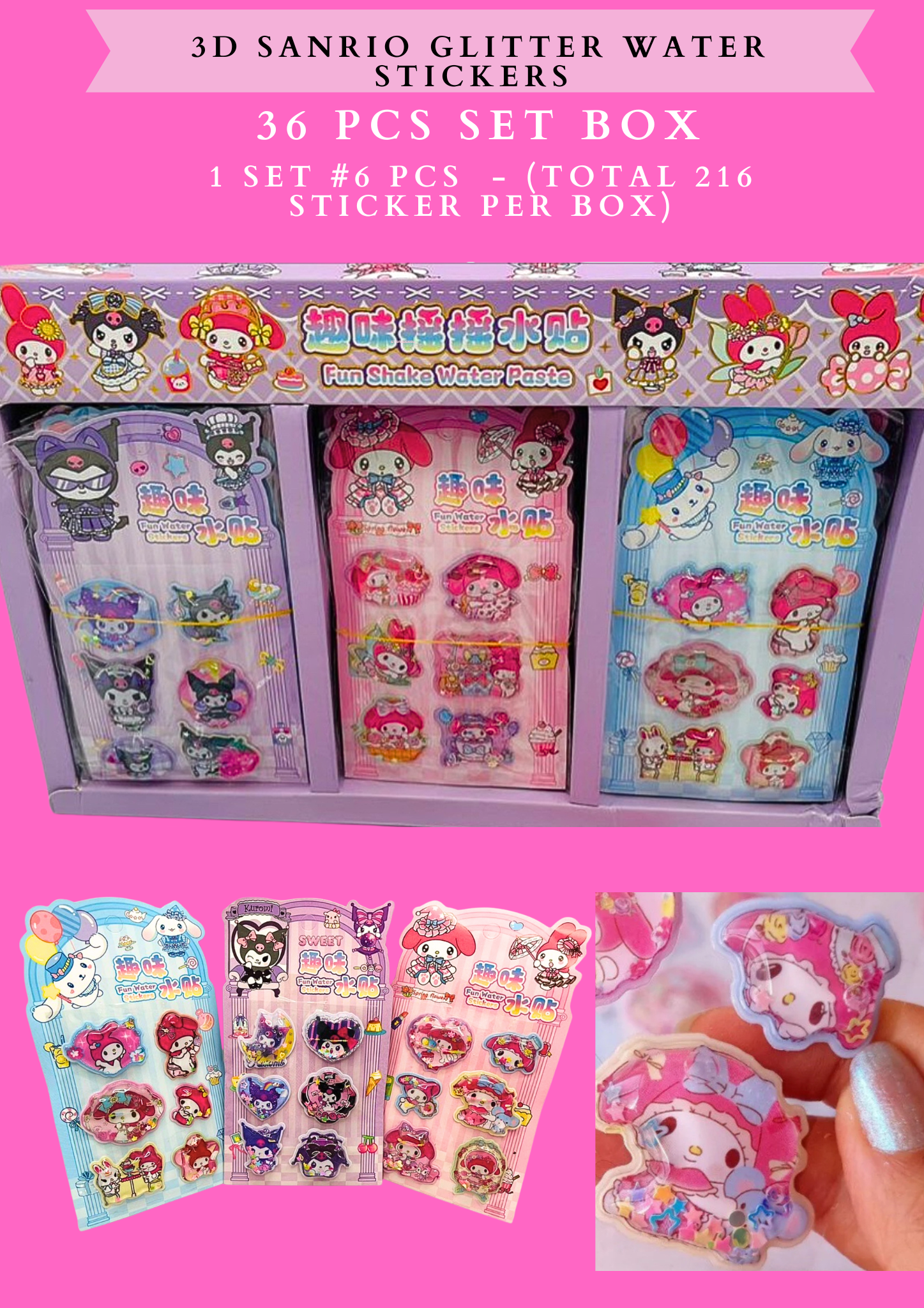 3D sanrio GLITTER WATER STICKERS- (36 PCS box) - (TOTAL 216 STICKER PER BOX