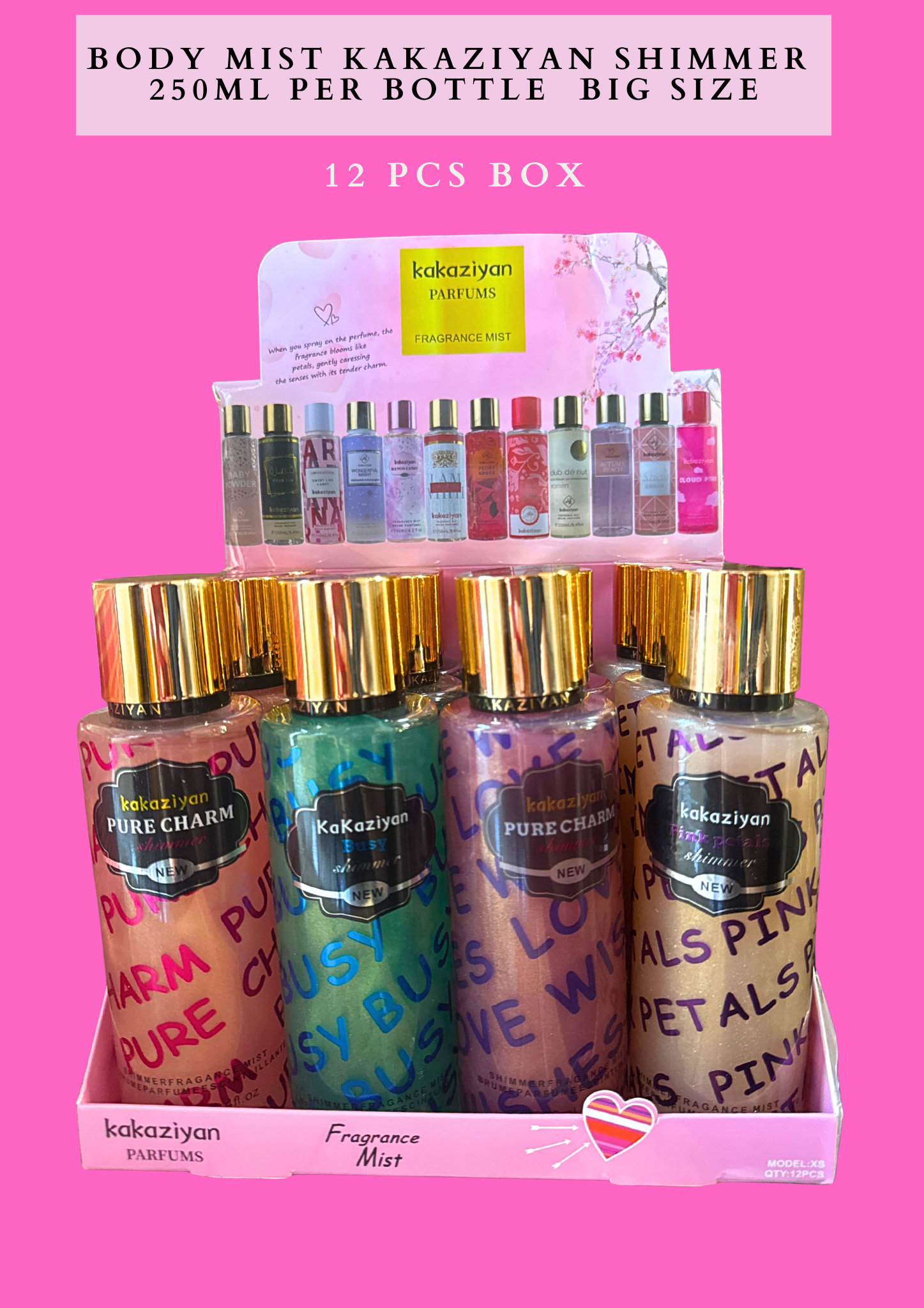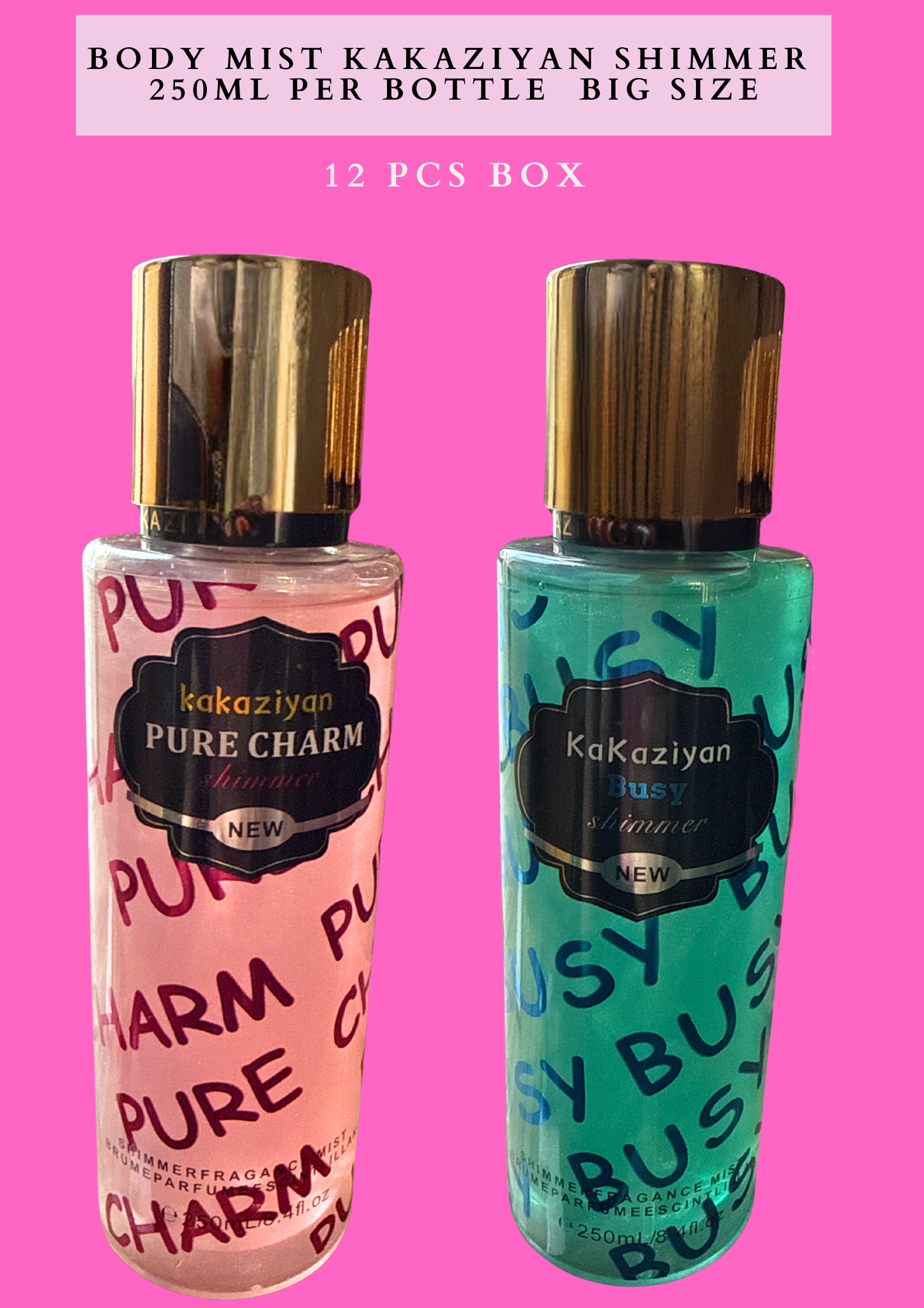 BODY MIST KAKAZIYAN SHIMMER 250ML PER BOTTLE -BIG SIZE 12 PCS BOX