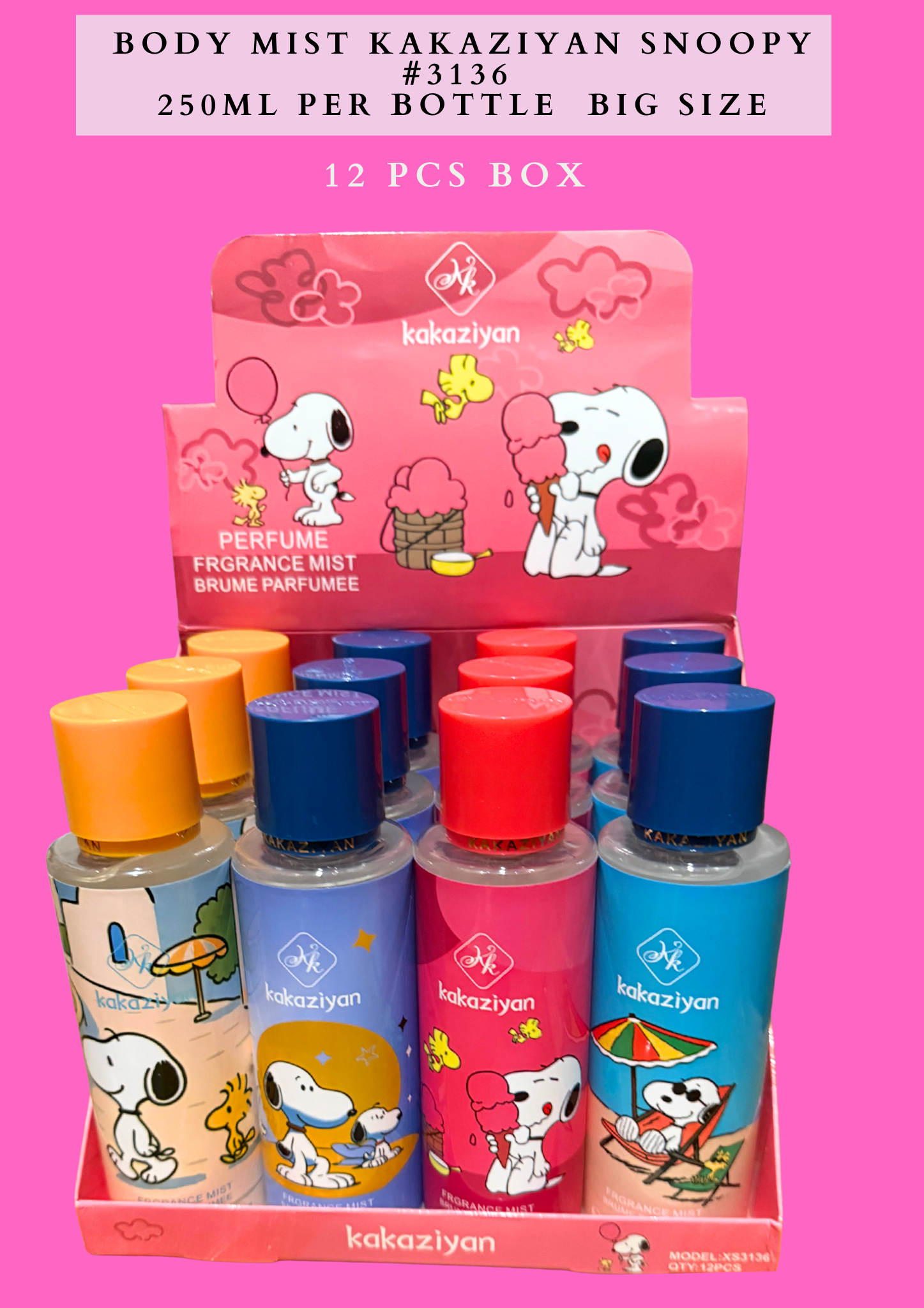 BODY MIST KAKAZIYAN SNOOPY #3136 250ML PER BOTTLE BIG SIZE - 12 PCS BOX