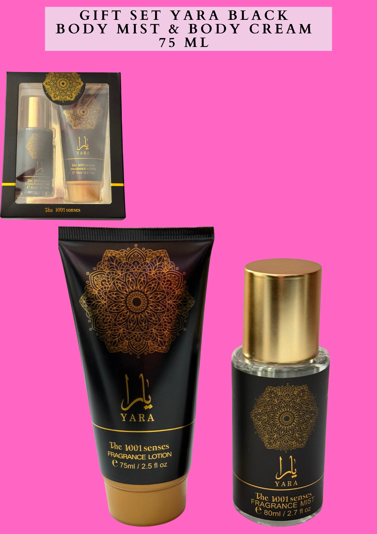 GIFT SET YARA BLACK BODY MIST & BODY CREAM 75 ML