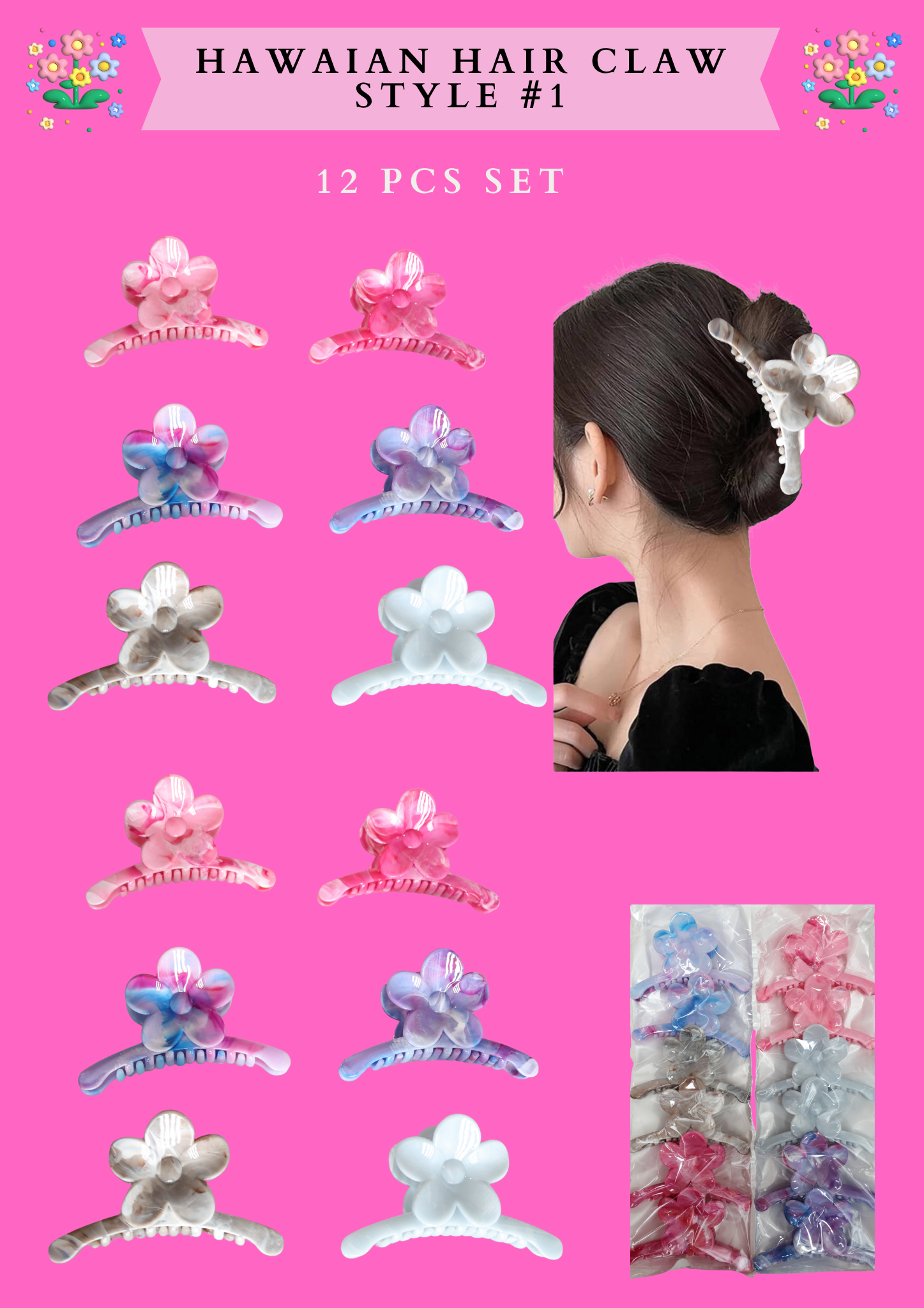 HAWAIIAN HAIR CLAW (STYLE #1 )- (12 PCS SET)