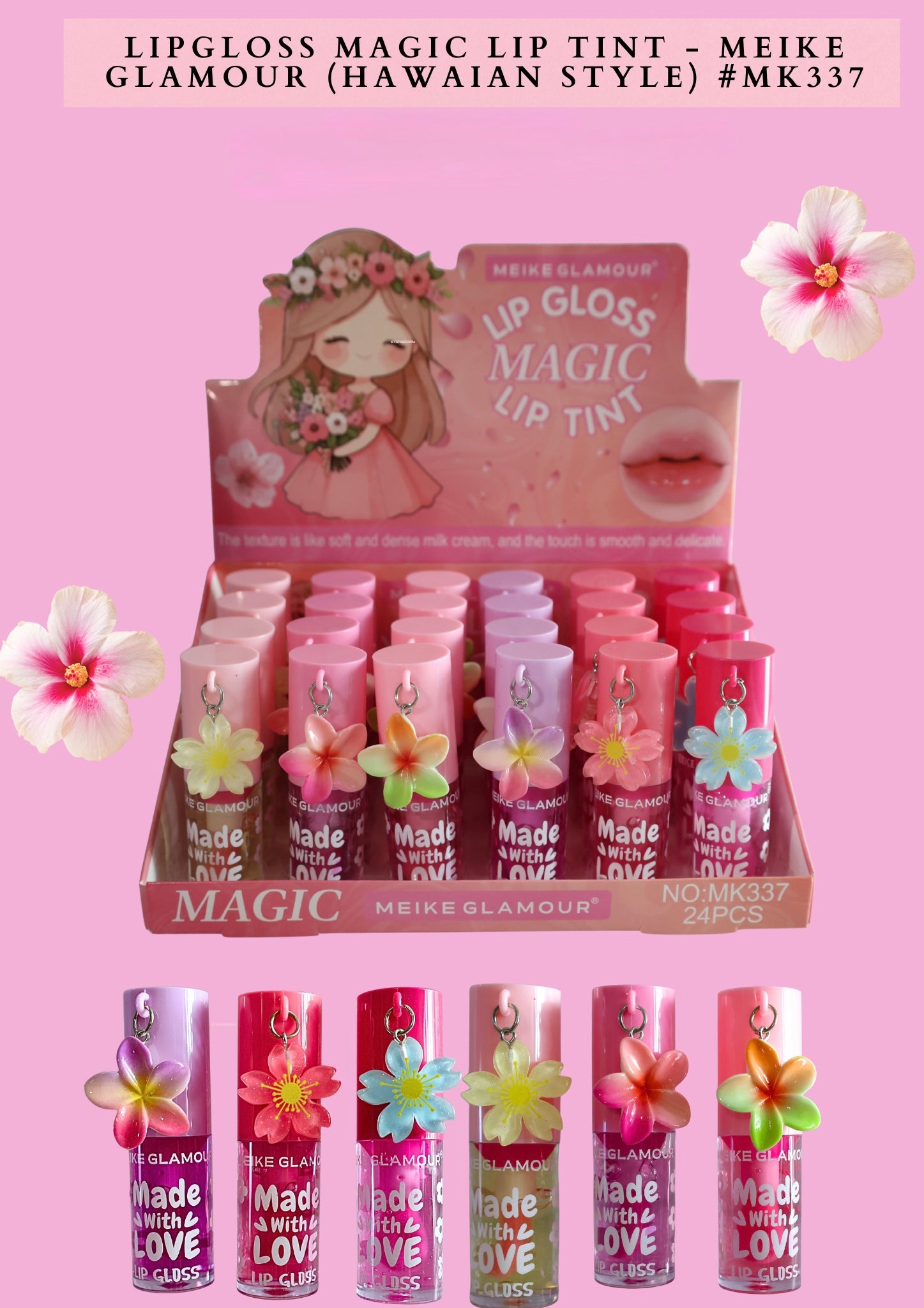 LIPGLOSS MAGIC LIP TINT - MEIKE GLAMOUR (HAWAIAN STYLE) #MK337 (24 PCS BOX)
