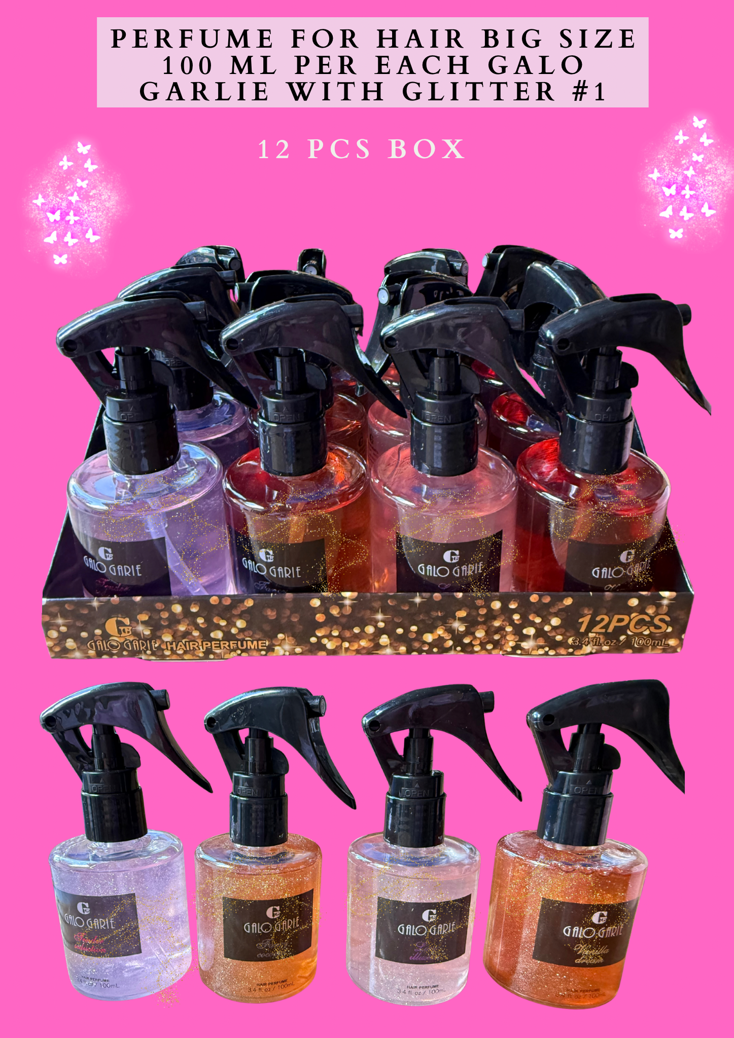PERFUME FOR HAIR BIG SIZE 100 ML PER EACH GALO GARLIE WITH GLITTER #1 - (12 PCS BOX)