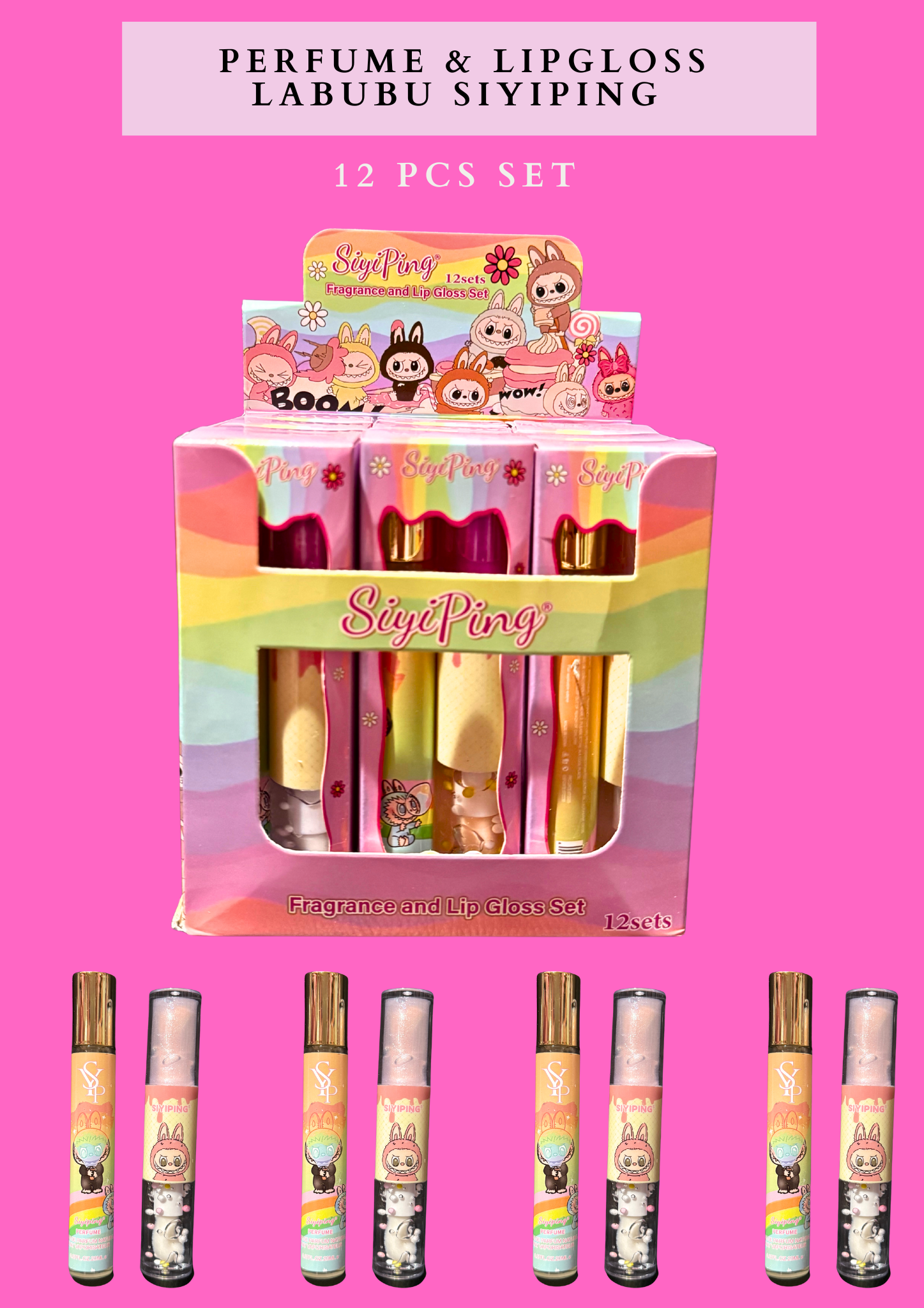 PERFUME & LIPGLOSS LABUBU SIYIPING - 12 PCS SET