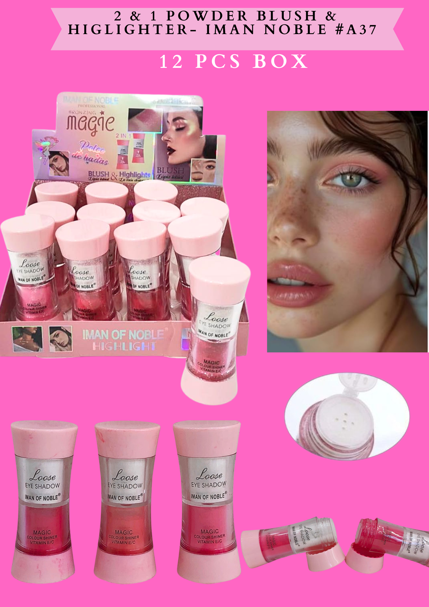 2 & 1 POWDER BLUSH & HIGLIGHTER- IMAN NOBLE #A37 - 12 PCS BOX