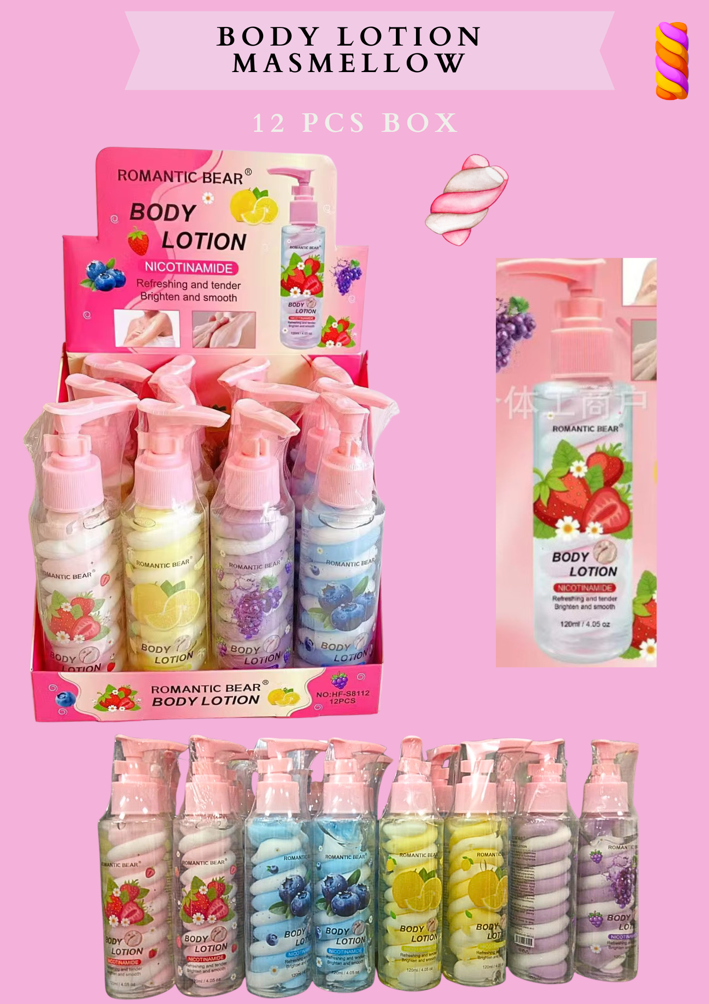 BODY LOTION MASMELLOW - 12 PCS BOX- big size 120 ml per bottle