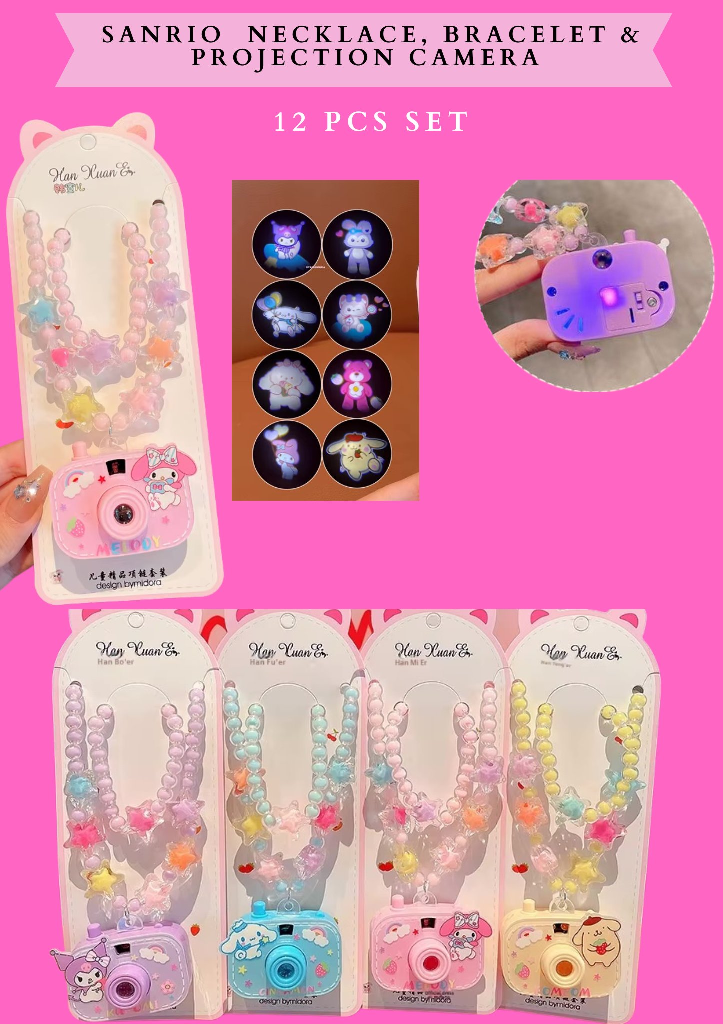 SANRIO NECKLACE, BRACELET & PROJECTION CAMERA -12 PCS SET